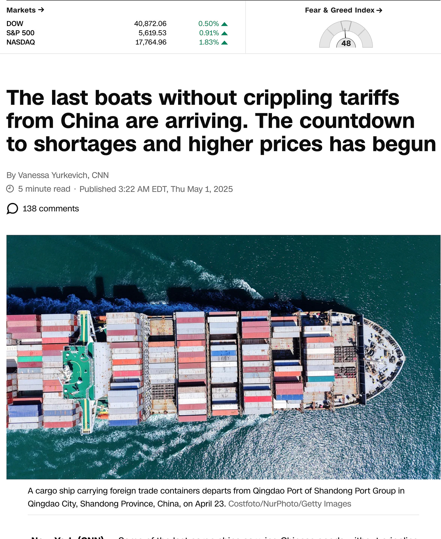 The CNN article discusses the looming impact of a 145% tariff on Chinese goods, which will significantly alter the dynamics of U.S. imports. As these tariffs take effect, importers face tough choices: either absorb the increased costs or pass them on to consumers. This situation is expected to lead to higher prices and reduced availability of essential goods, from electronics to clothing.